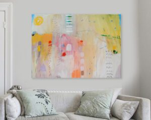 Apstraktna slika, original na platnu za moderni interijer. Horizontalno vodoravni format, dimenzije su 100 x 70 cm. Autor slike ranko ajdinovic. Tehnika akril kombinirano na platnu.