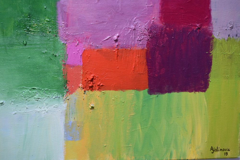 Velika moderna umjetnička slika na platnu slikara Ajdinović Ranka, ” Kompozicija sa 11 ” jedini je primjerak u svijetu kao takav.