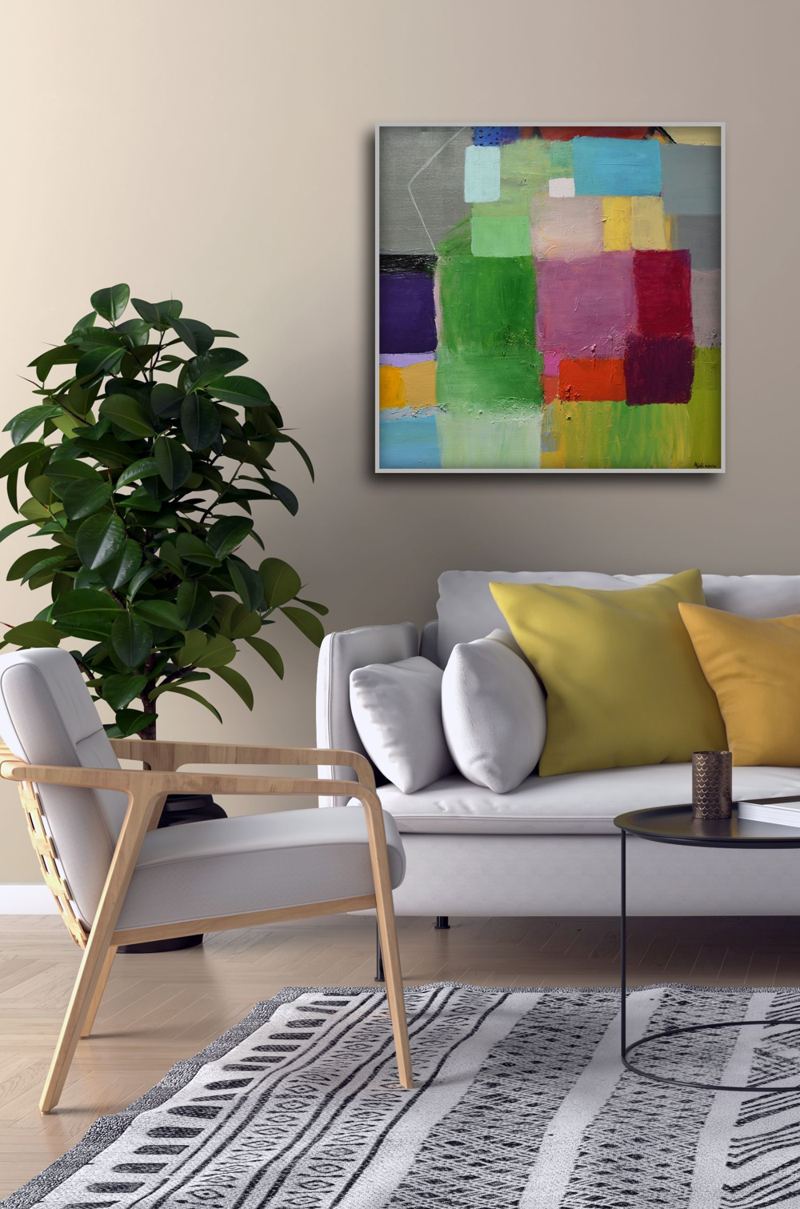 akril kombinirano na platnu koje je napeto na profesionalnim drvenim letvicama. Pripremljena je i spremna za postavljanje