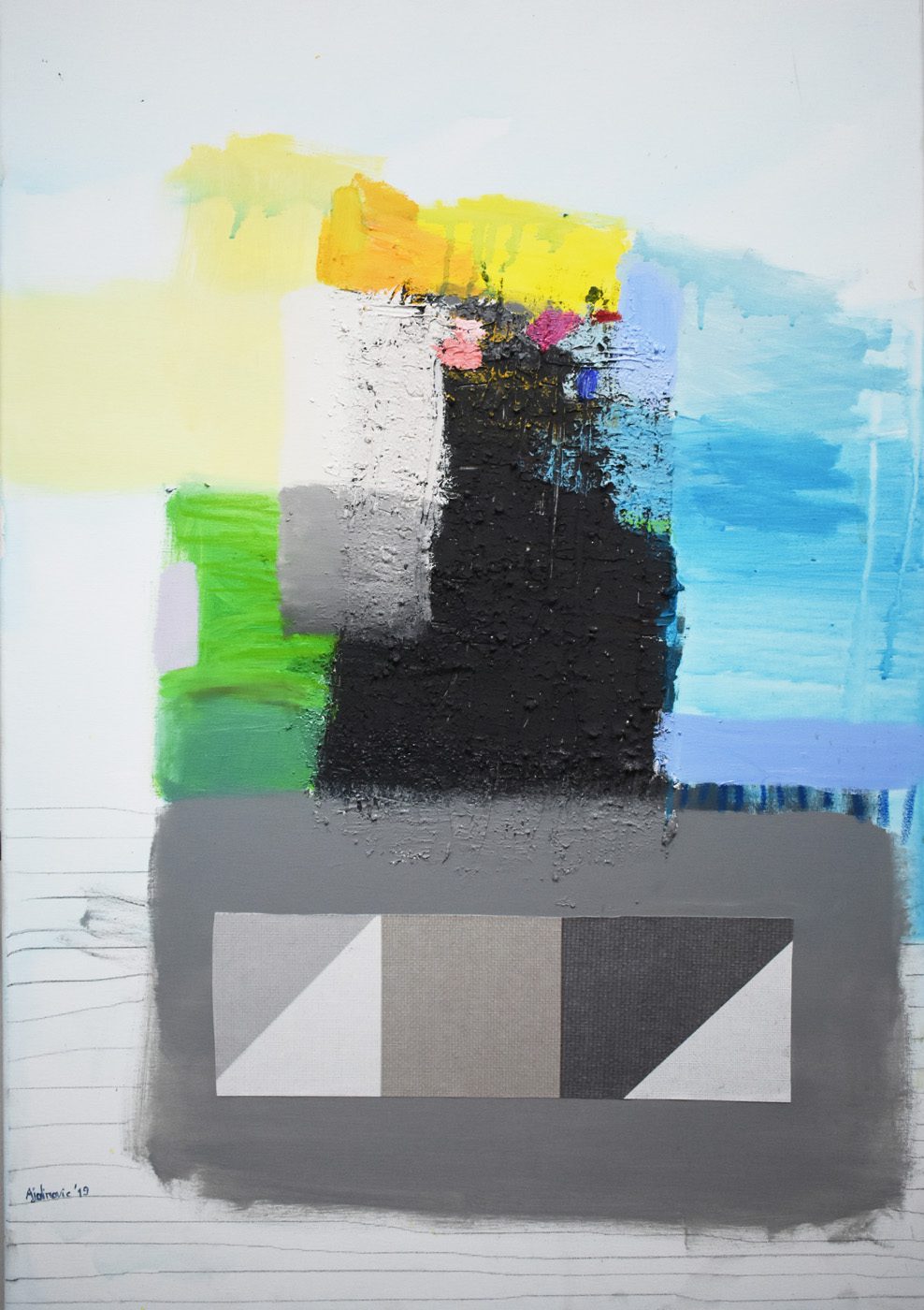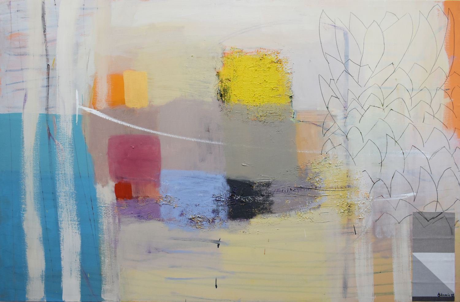 Ajdinovićev svijet čine obojane plohe fine, delikatne palete , vijugavi pravci koji se probijaju između tih neobičnih oblika ili ih čak spajaju u jedinstvenije cjeline, tvoreći složeni svijet imaginarnih konstrukcija, duboko skriven, svijet koji se teško i mukotrpno otkriva u slici s naizgled vrlo simplificiranim motivima.