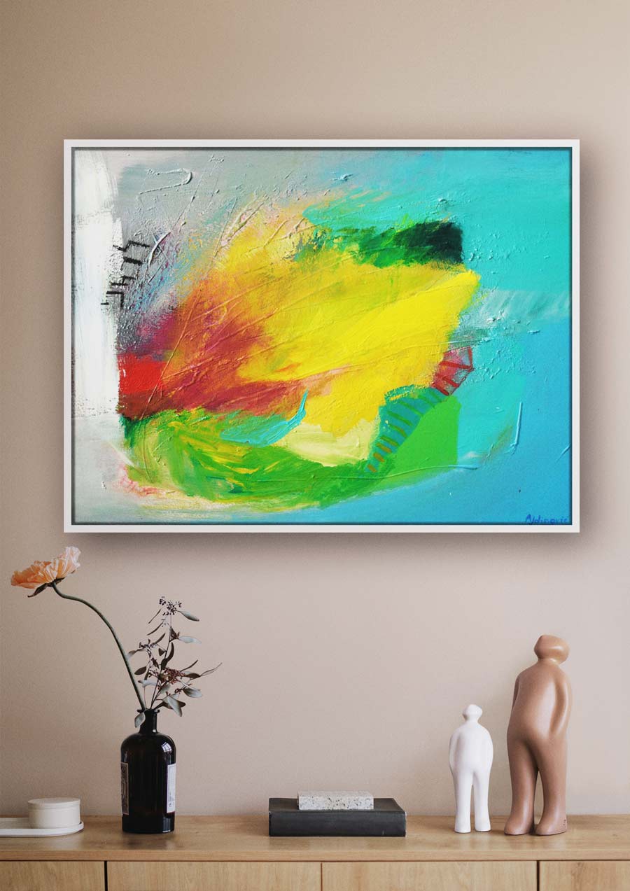 na zid, te nije potrebno dodatno uramljivanje ( ako se ne želi ). Za svaku kupljenu umjetničku sliku izdajem ovjeren i ručno potpisan certifikat autentičnosti. Ova apstraktna, moderna slika izvrstan je autorski primjerak sa potpisom koji nosi stvarnu