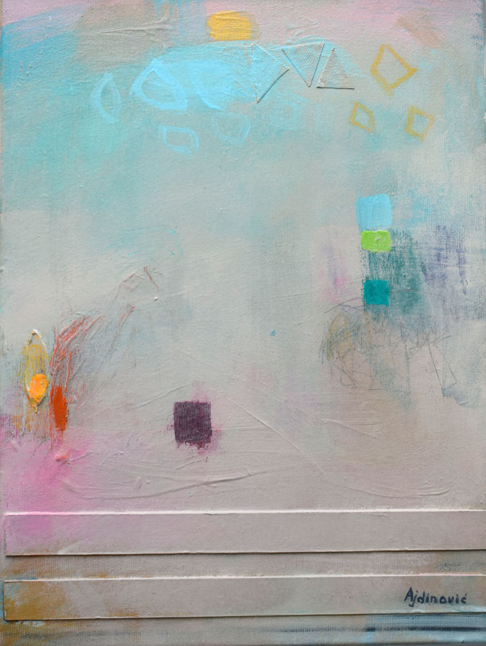 Materijali: Platno, kolaž, akrilne boje