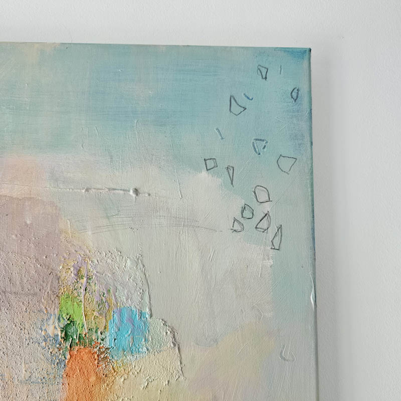 Moderna slika pastelnih tonova, apstrakcija na platnu akademskog slikara Ranka Ajdinovića. Ovo umjetnina jedinstveni je i jedini primjerak u svijetu kao takav.