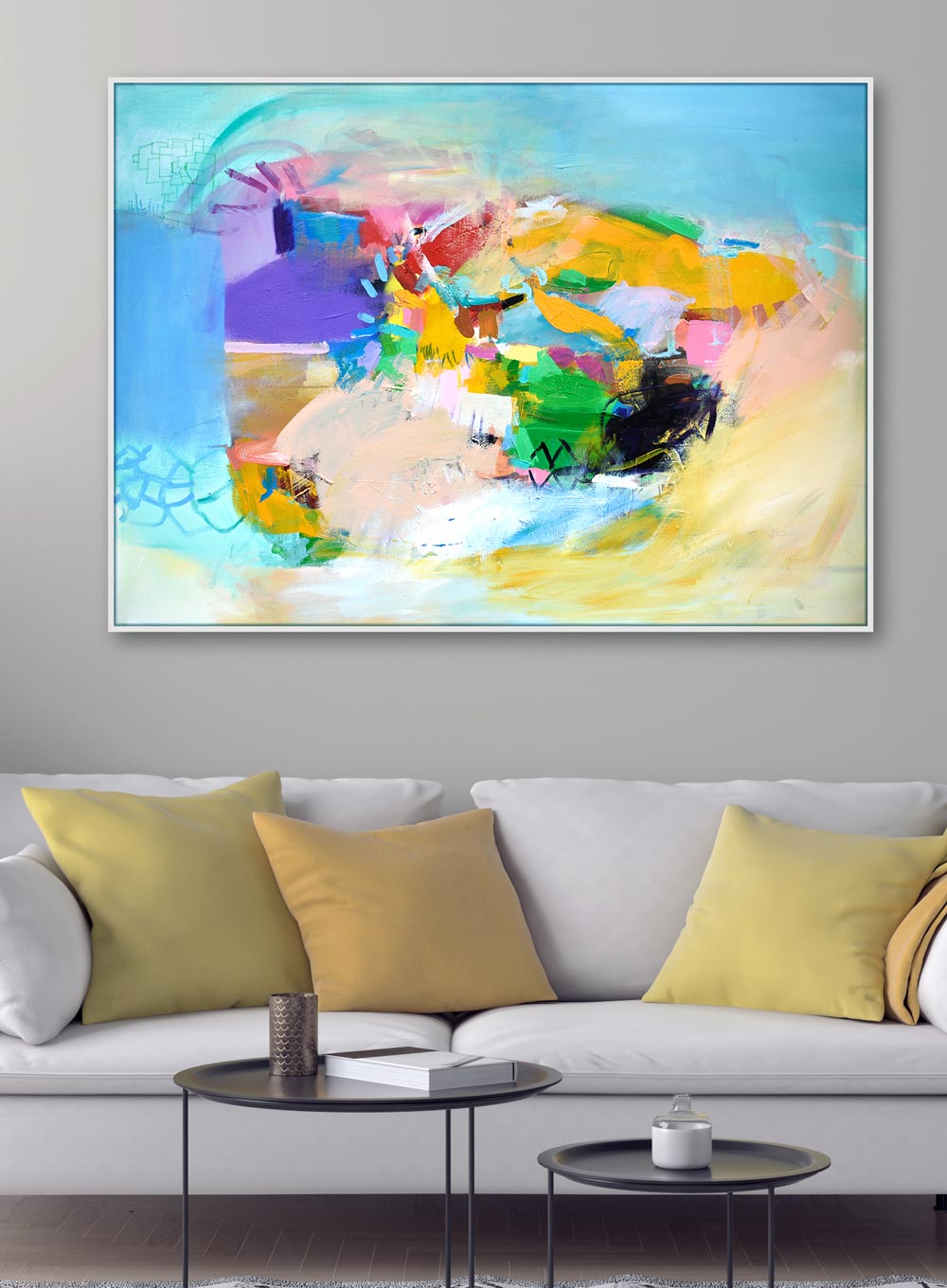 Velika žuto plava slika na platnu u dimenzijama 120 x 150 cm umjetničko je djelo akademskog slikara Ranka Ajdinovića. Originalna slika i jedinstveni i jedini primjerak u svijetu kao takav.